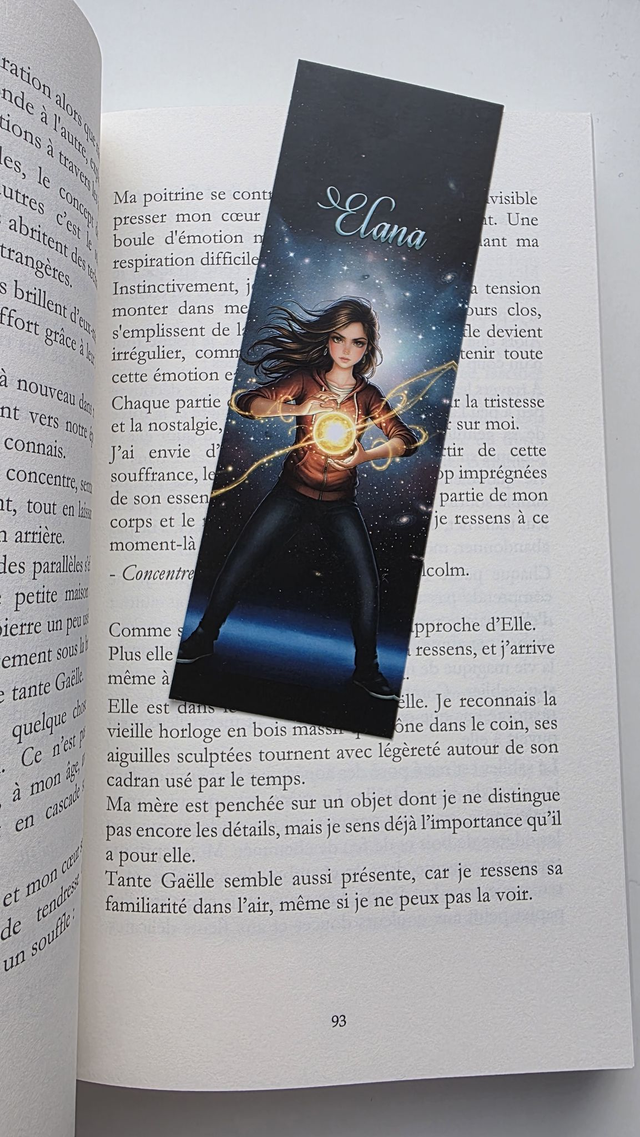 Marque-page inspiré du roman Elana à travers les mondes. (5 cm de largeur et 15 cm de hauteur)